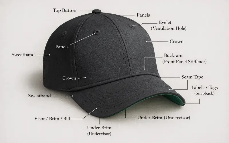 We’ll explore everything from the crown, panels and visor to smaller but vital details like the eyelets, sweatband and closure strap. You’ll learn how each part affects shape, comfort, ventilation and aesthetic appeal.