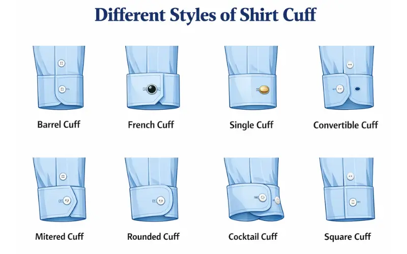 Some cuff styles — such as French cuffs — immediately signal formality and sophistication. Others, like the standard barrel cuff, offer a more relaxed or business-casual vibe. Choosing the right cuff ensures your shirt matches the occasion.