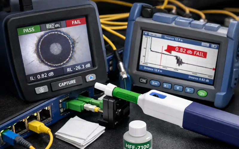 Pen scratches will cause a 1.0 dB IL jump and a 0.4 dB shift with 2μm scars, but cleaning after the protocol leaves it at 0.15 dB IL, with normal reflection and a full IEC pass without residue. Batch smaller problems and effective cleaning are also the way that ultra-reliable fiber links can carry the largest enterprise loads, such as 400G traffic bursts, without failing.